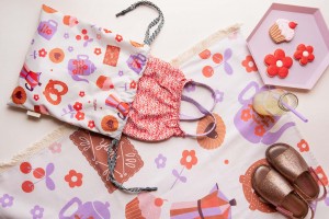 Contenedor confeccionado en tejido de Cordura estampada con ilustración de Eugenia Hernandez en alianza exclusiva con Matriona. Este tejido es ideal para limpiarlo con un paño húmedo.