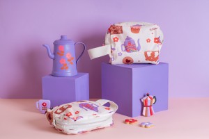 Contenedor confeccionado en tejido de Cordura estampada con ilustraciones de Luz Preumayr en alianza exclusiva con Matriona. Este tejido es ideal para limpiarlo con un paño.